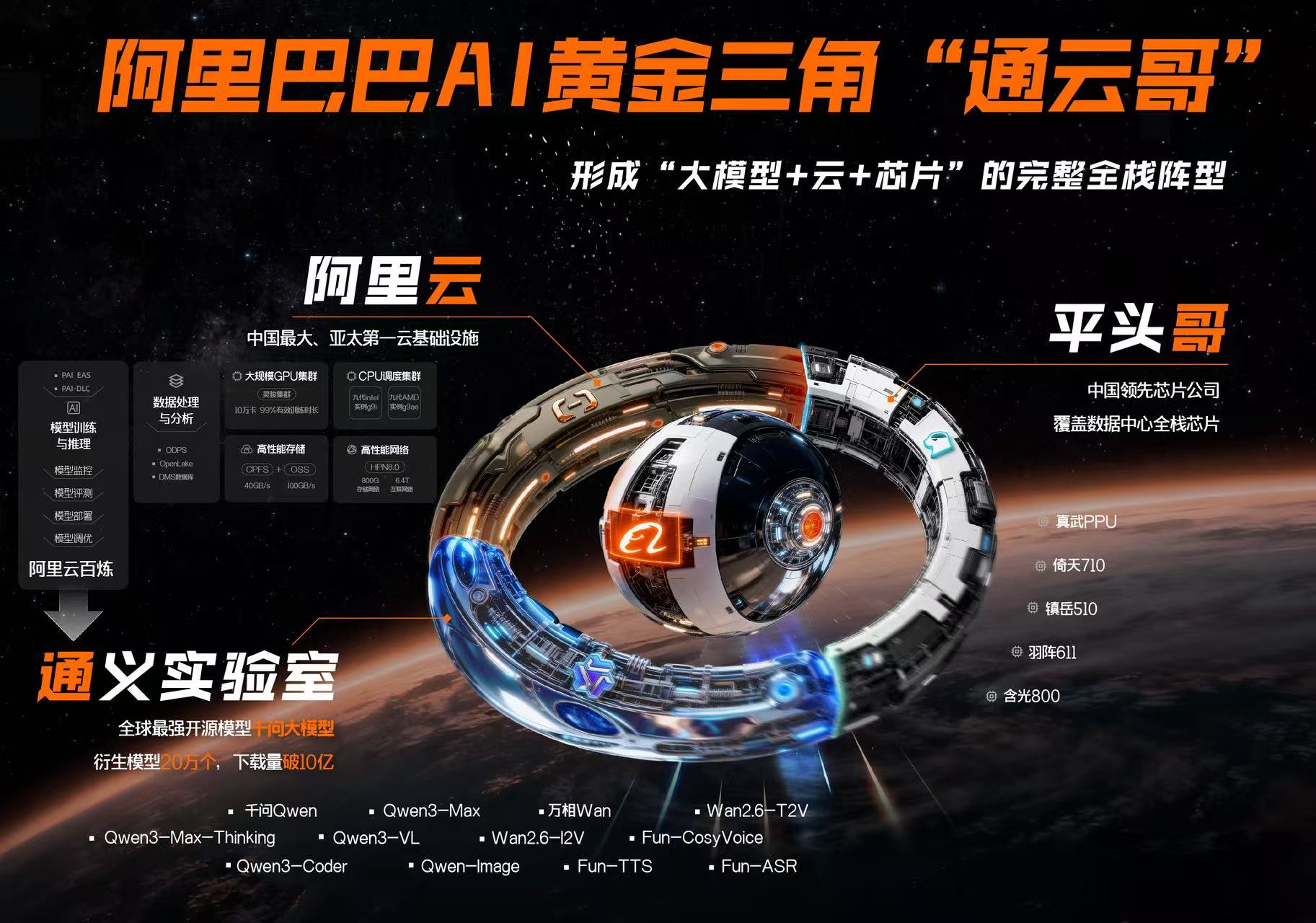 从技术到商业:模型研发(通义)、基础设施建设(云与芯片)与应用落地(千问、悟空),正在形成高效的正反馈循环。