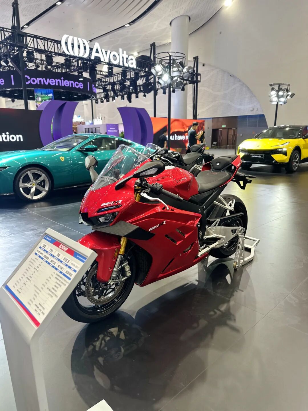 记者注意到,今年在世界超级摩托车锦标赛(WSBK)葡萄牙站中斩获双冠、实现中国摩托车历史性突破的“张雪机车”品牌首次亮相消博会,展台前人头攒动,人气热度甚至超过豪车。