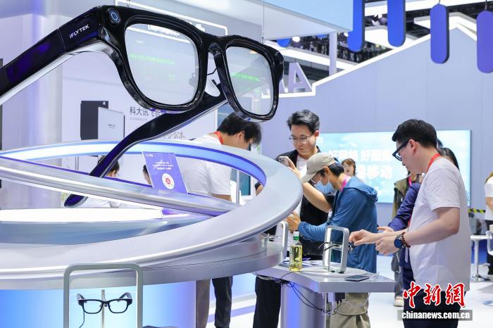 4月13日至18日,第六届中国国际消费品博览会在海南海口举办。图为展出的AI眼镜吸引参观者驻足了解。中新网记者骆云飞摄