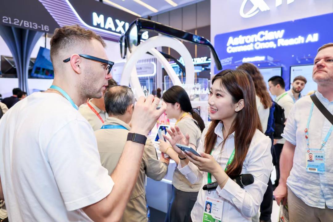 大翻译成就大生意。在第139届广交会上,搭载了AstronClaw底座能力的讯飞AI眼镜首次亮相,并集中展示讯飞翻译机、讯飞AI录音笔、讯飞办公本、讯飞AI翻译耳机、讯飞同窗AI黑板、讯飞Guide01机器人、讯飞会议一体机、讯
