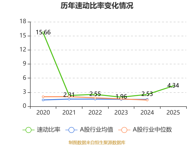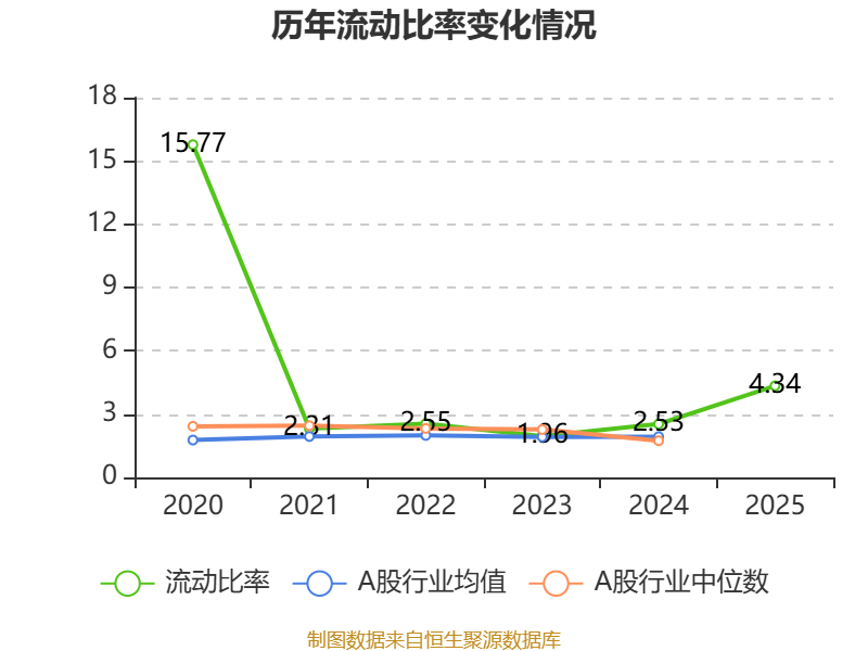 2025年,公司流动比率为4.34,速动比率为4.34。