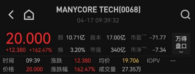 上市首日,群核科技股价开盘大涨171.65%,截至发稿,股价回落至162.47%,报20港元/股,最新市值340亿港元。