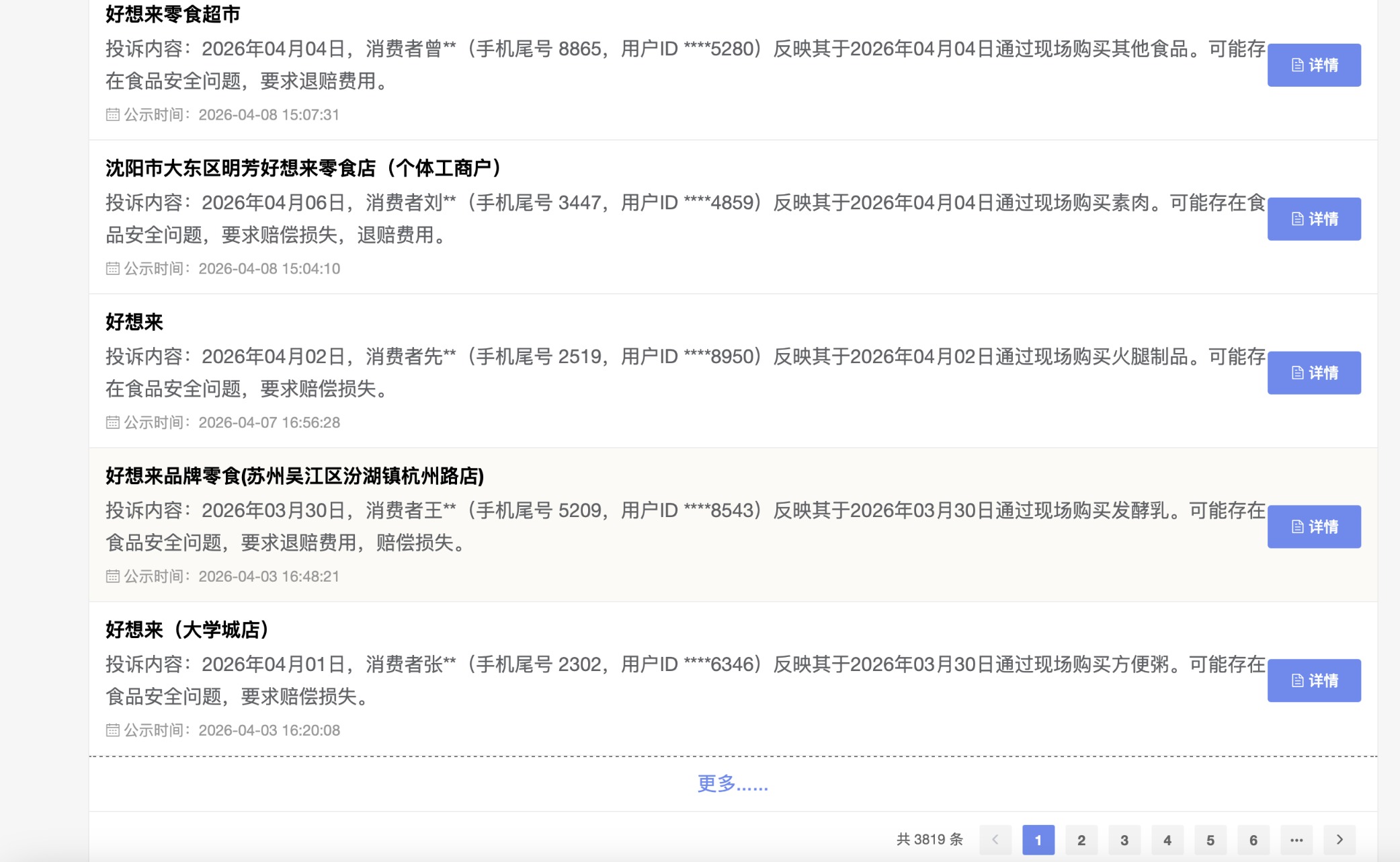 全国12315消费投诉信息公示平台上,近一年来好想来关于食品安全的投诉共有3819条。