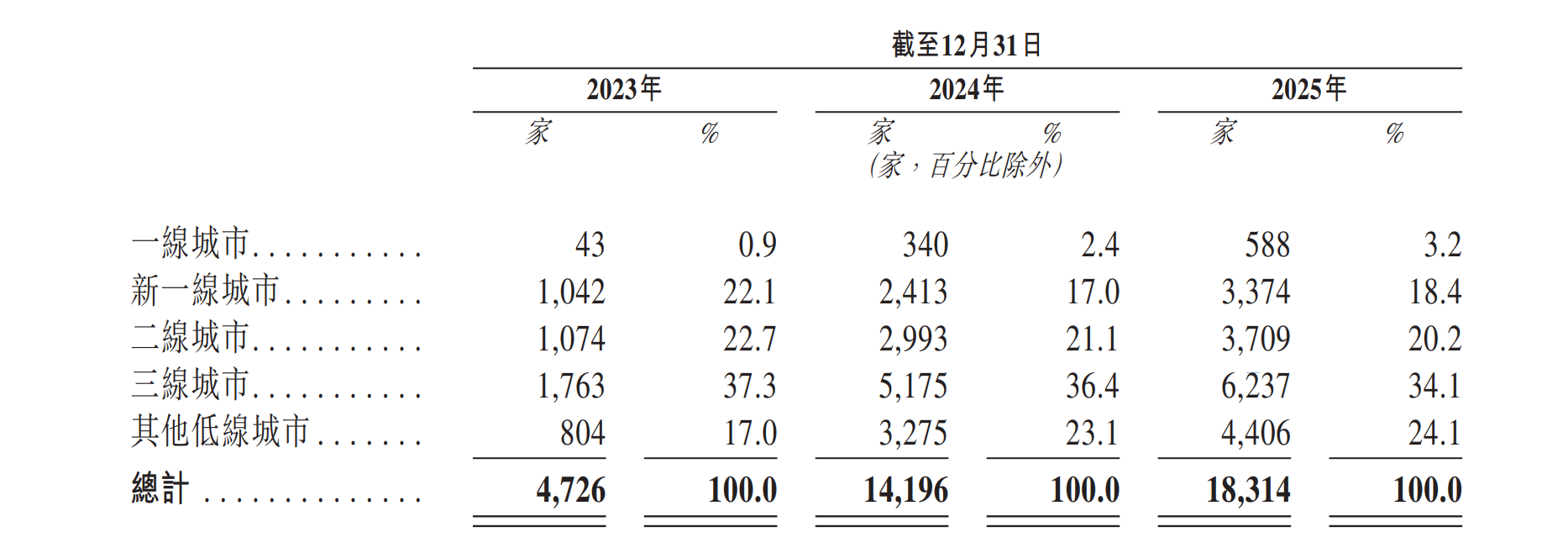 截至2025年12月31日,万辰集团门店总数达18314家(2024年底14196家),全年净增4118家,其中下半年净新增门店2949家,是上半年1169家的约2.5倍。