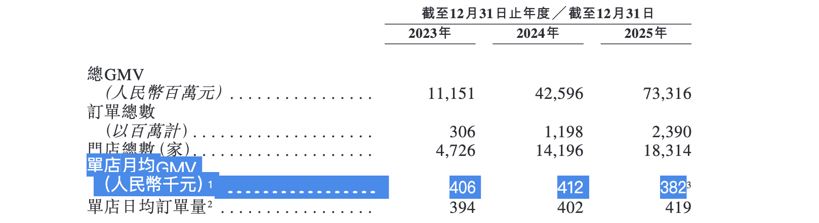 万辰集团提交的港股招股书显示,2025年门店的月均销售额(GWV)38万元,相比2024年的41万元下滑了。尽管万辰集团解释称,2025年的单店月均GMV在2025年下半年有所改善,由2025年上半年的约37万元增至2025年下半年的约39万元,但整体仍未恢复至此前水平。