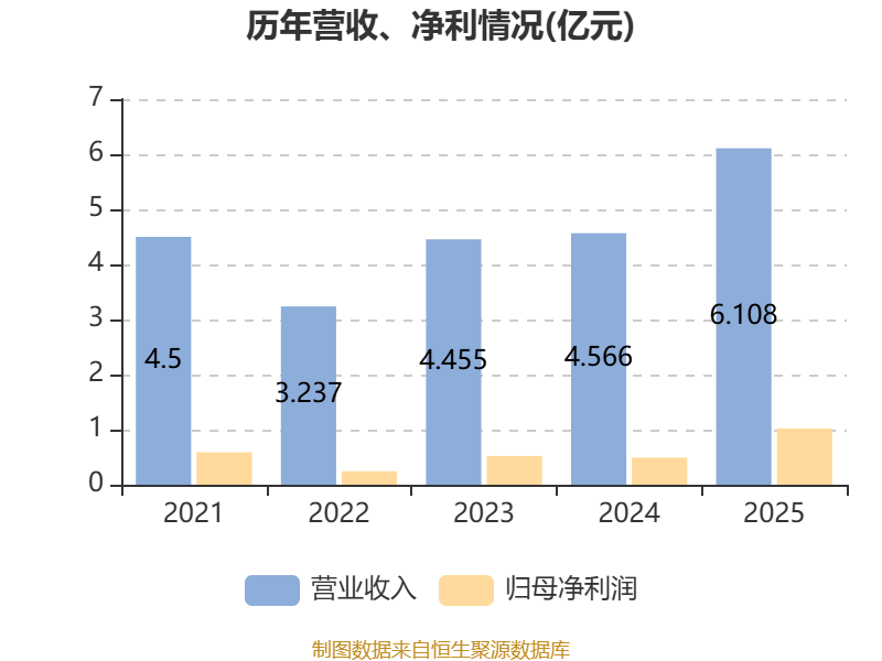 中证智能财讯西普尼(02583)4月17日披露2025年度报告。报告期内,公司实现营业收入6.11亿元,同比增长33.79%;归母净利润1.02亿元,同比增长106.49%;据报告显示,西普尼基本每股收益为2.00元,平均净资产收益率为12.18%。