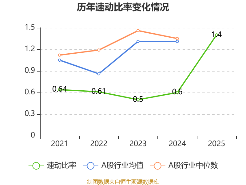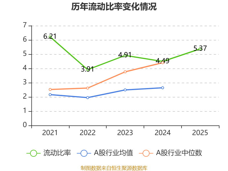2025年,公司流动比率为5.37,速动比率为1.4。