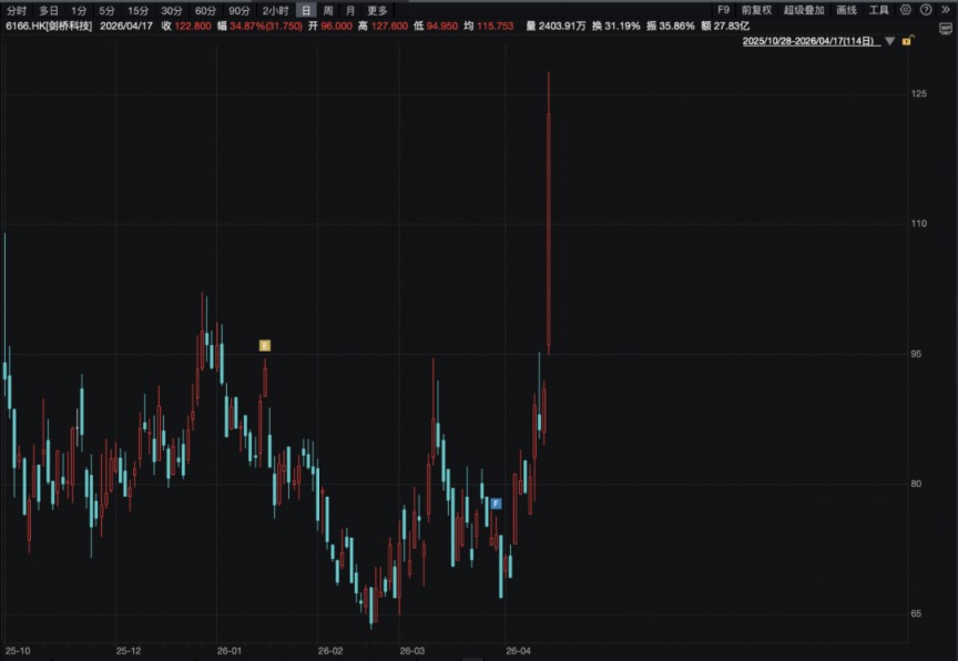 AI算力基础设施需求持续火热带动共封装光学(CPO)赛道今日强势爆发,剑桥科技收涨34.87%,领跑港股科技细分板块,成为全场最大亮点之一。