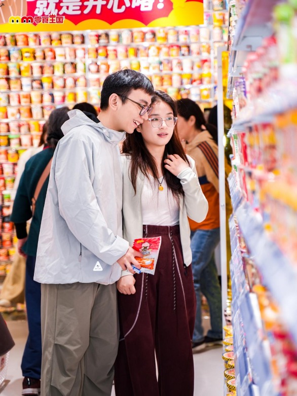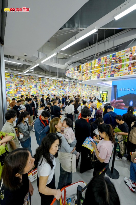 从“零食长廊”进入,在7.6万颗棒棒糖拼制的封面墙前完成第一站打卡;转入“泡面之城”,在3500多种泡面中寻找记忆与新鲜感;走进“全球零食站”,一次性解锁近20个国家的可乐与多口味乐事薯片;在面包墙、巨型购物车与60+品牌IP互动区停留拍照;再到“零食很大”与“零食很小”之间感受尺度反差,从1米高的巨型零食到拇指大小的迷你零食挂件,形成强烈的视觉与体验对比;最后在“雀神争霸赛”等互动区域停下脚步,让“逛店”变成一场参与感更强的游戏过程,不少市民表示“每走一步都有惊喜,逛店就像一场零食寻宝”。