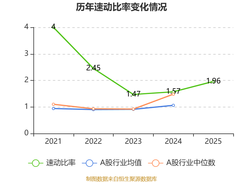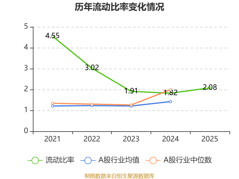 2025年,公司流动比率为2.08,速动比率为1.96。