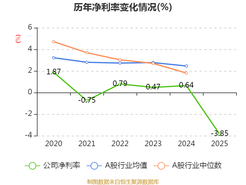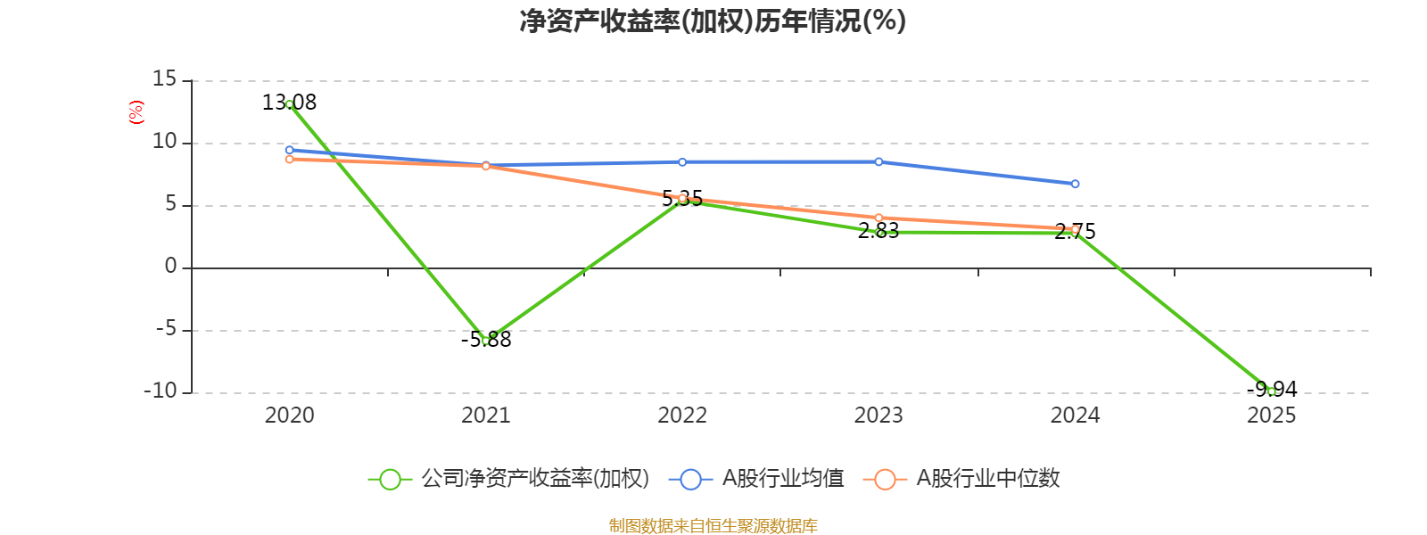 数据显示,2025年公司平均净资产收益率为-9.94%,较上年同期下降12.69个百分点。