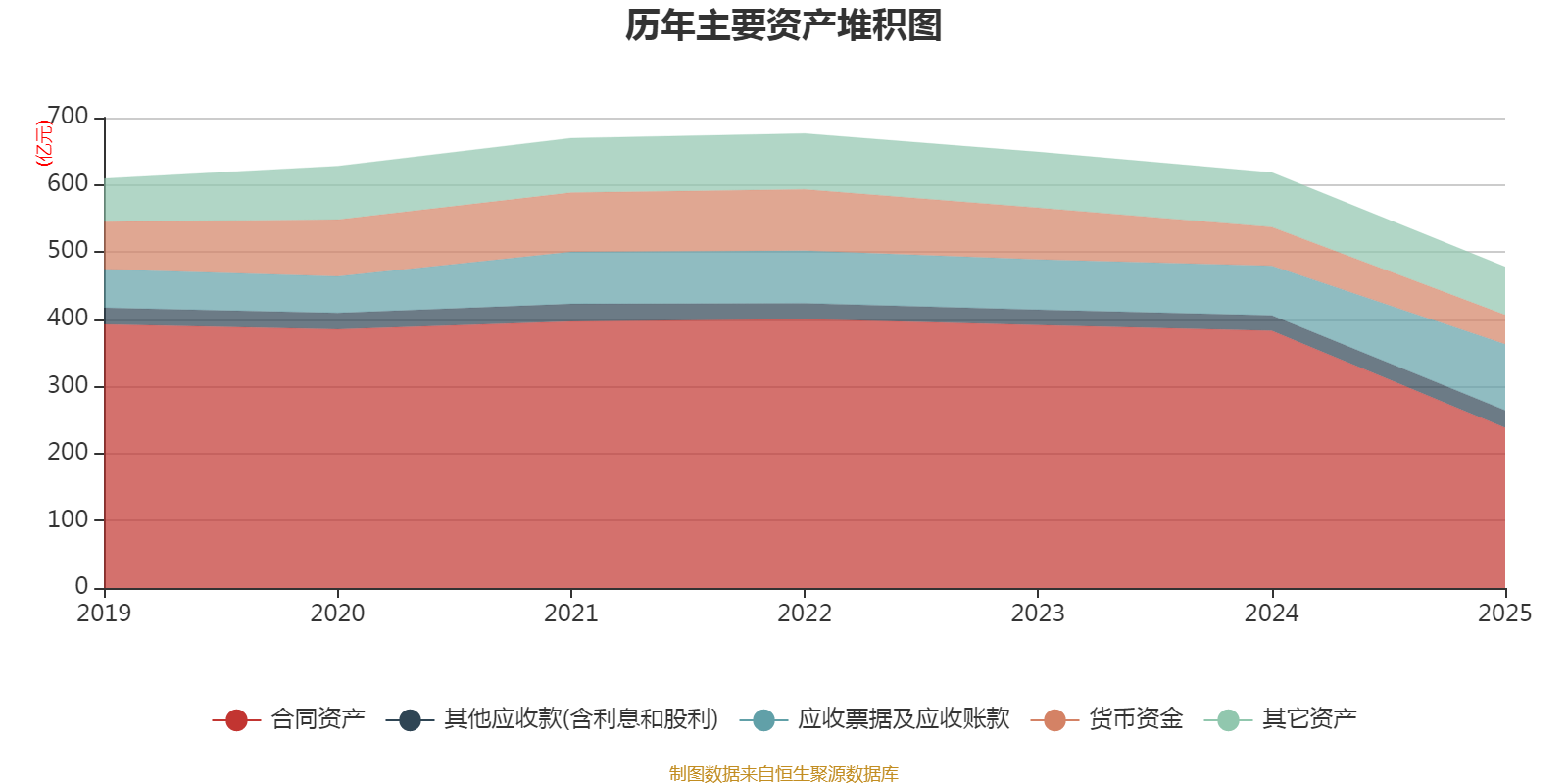 资产重大变化方面,截至2025年末,公司合同资产较上期末减少37.73%,占公司总资产比重下降12.02个百分点;应收票据及应收账款较上期末增加33.17%,占公司总资产比重上升8.65个百分点;其他应收款(含利息和股利)较上期末增加13.56%,占公司总资产比重上升1.75个百分点;预付账款较上期末减少43%,占公司总资产比重下降0.3个百分点。