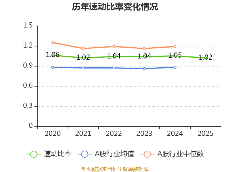 2025年,公司流动比率为1.02,速动比率为1.02。