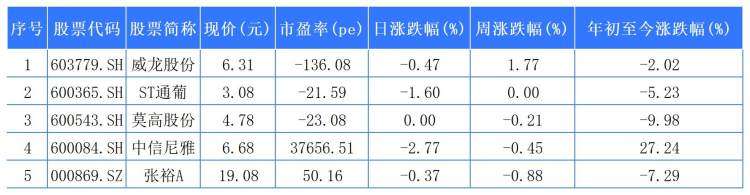 退市倒计时的*ST岩石报收1.08元,日涨幅4.85%(涨停),不过,周涨幅为-14.29%,今年以来涨幅-62.76%,均居白酒A股涨幅末位。
