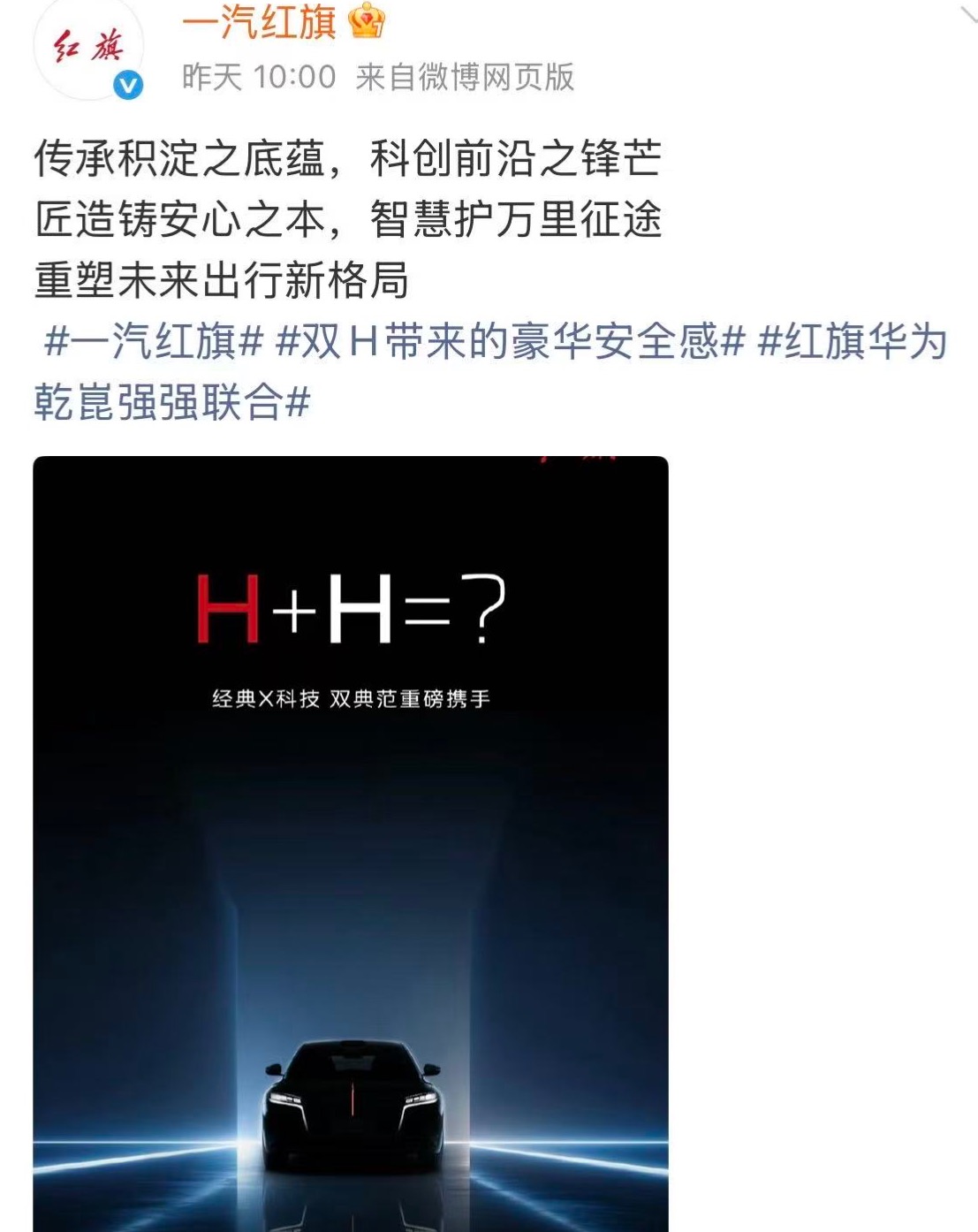 一汽红旗与华为乾崑官宣 或采用“三智”模式展开合作