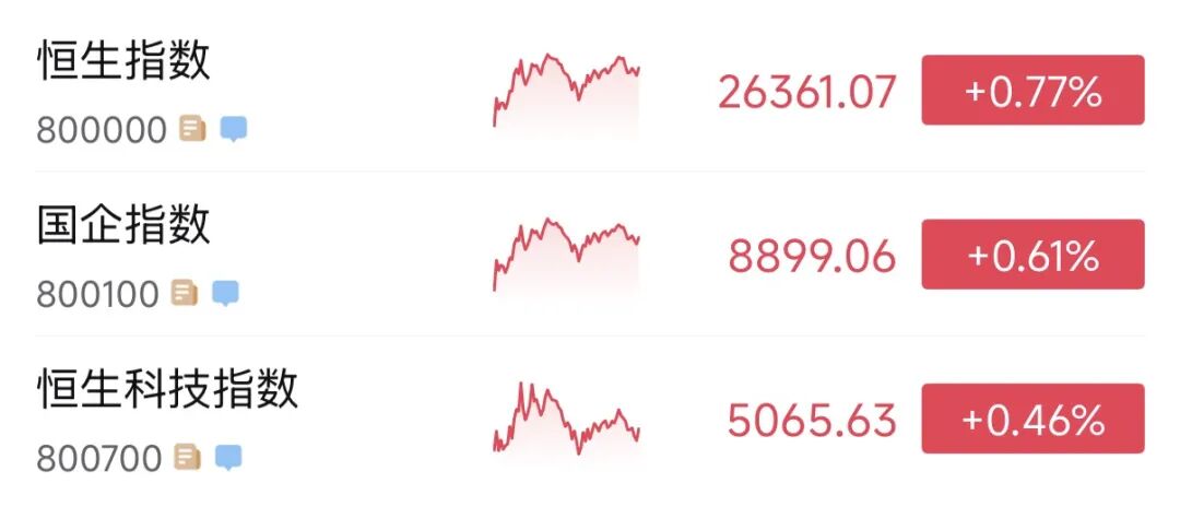 4月20日,港股高开后震荡走高,最终三大指数集体上涨。截至收盘,恒生指数涨0.77%,报26361.07点;恒生国企指数涨0.61%,报8899.06
