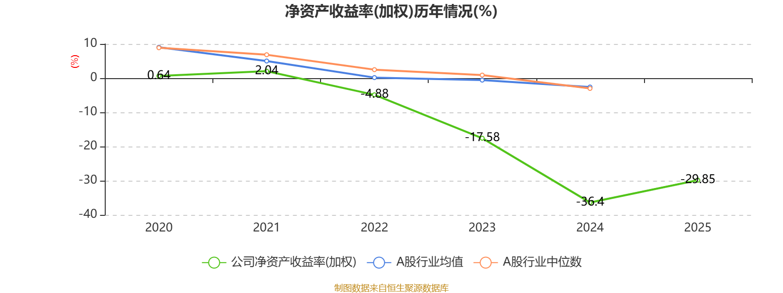 数据显示,2025年公司平均净资产收益率为-29.85%,较上年同期上升6.55个百分点。