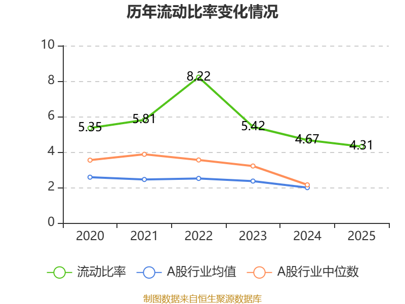 2025年,公司流动比率为4.31,速动比率为4.16。