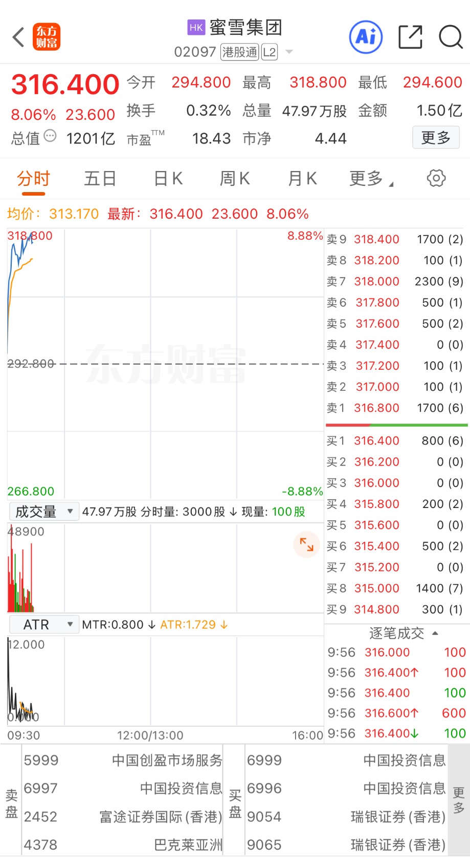 上证报中国证券网讯(记者何治民)4月21日,蜜雪集团快速拉升,截至9时57分,股价涨8.06%,报316.40港元/股,市值超1200亿港元。