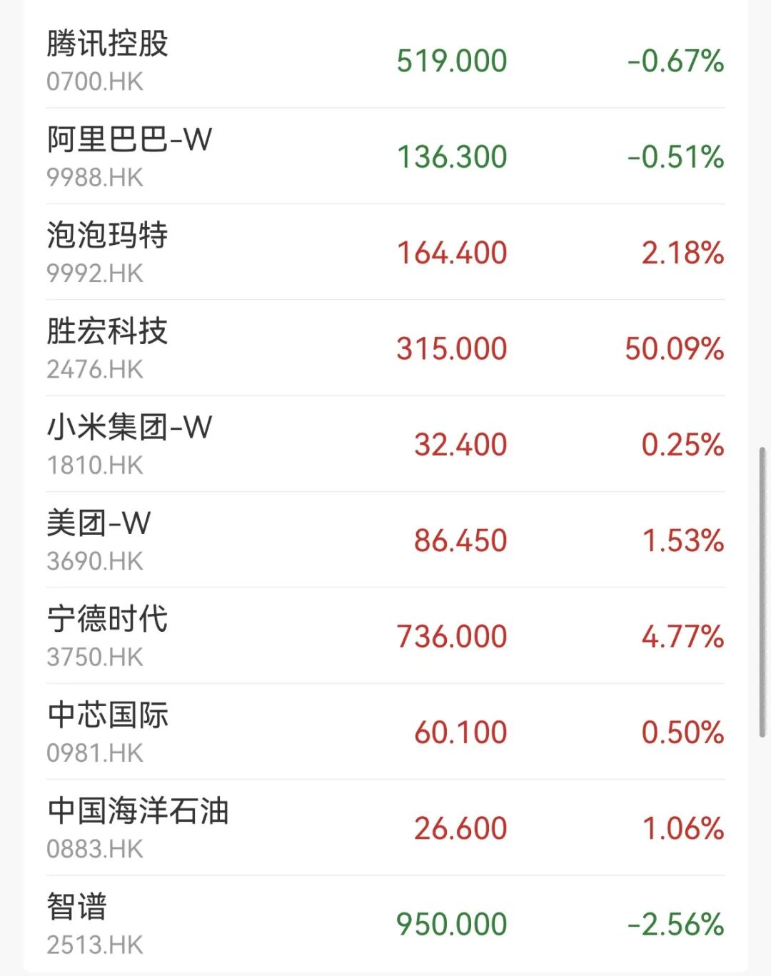 【导读】港股三大指数涨跌不一!胜宏科技首日挂牌大涨超50%