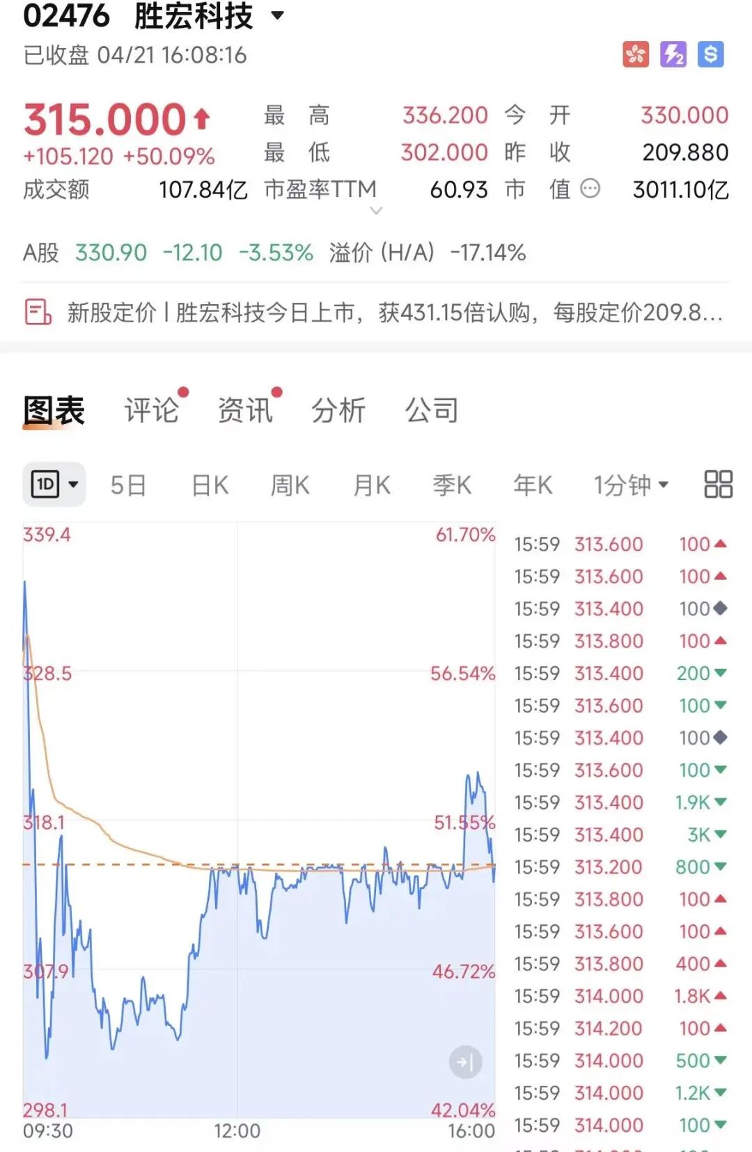 4月21日,AI及高性能PCB生产商胜宏科技表现十分突出,收涨50.09%,最新总市值突破3000亿港元。
