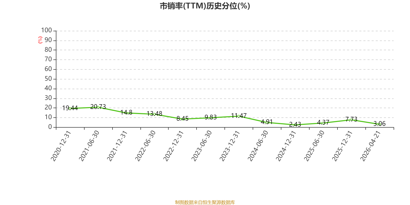 以4月21日收盘价计算,佳华百货控股目前市净率(TTM)约-0.26倍,市销率(TTM)约0.09倍。