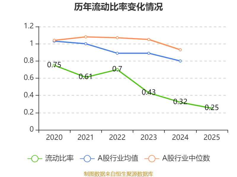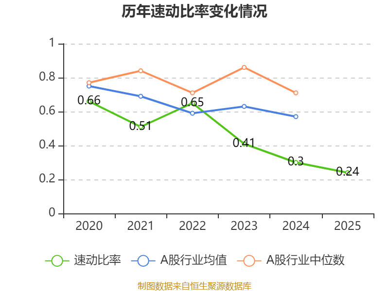 2025年,公司流动比率为0.25,速动比率为0.24。