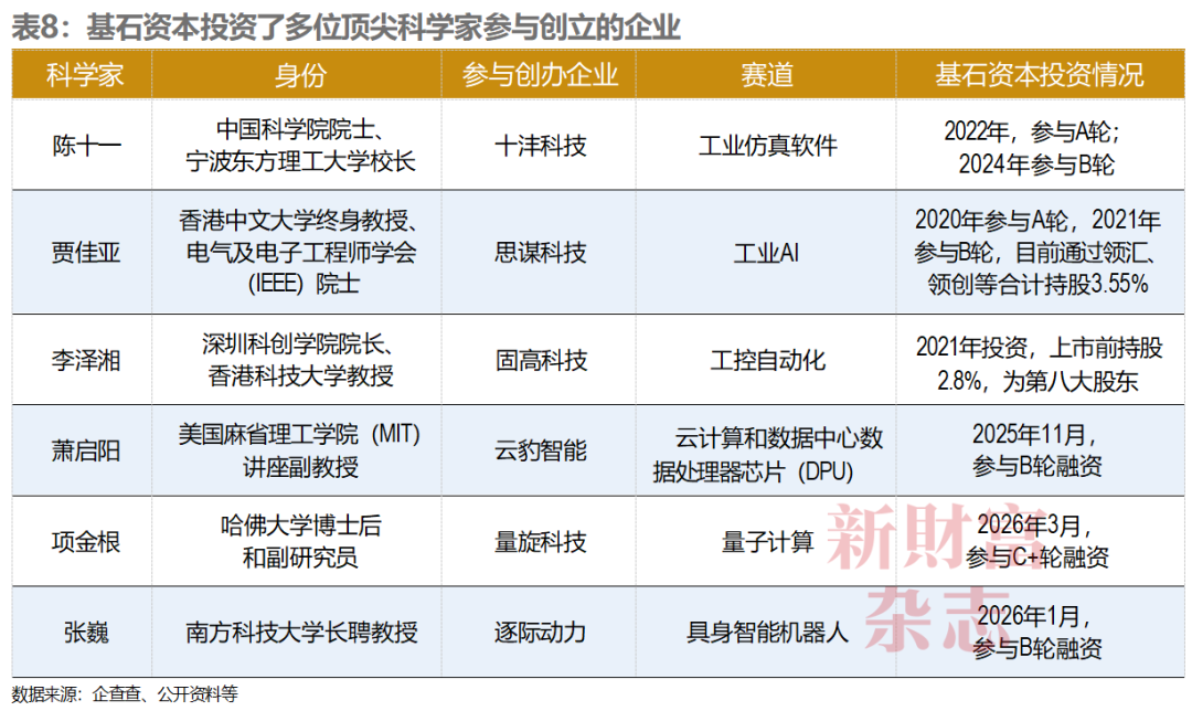 顶尖科学家的技术判断力和产业号召力,当是突破硬科技壁垒的关键(表8)。