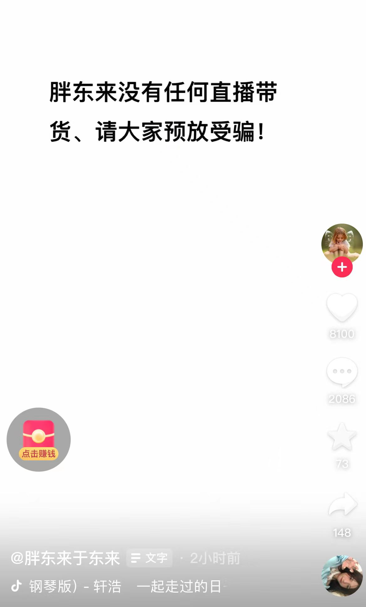 11月28日,胖东来创始人于东来通过其社交媒体账号发布声明,明确指出胖东来并未涉足直播带货领域,提醒广大消费者谨防上当受骗!