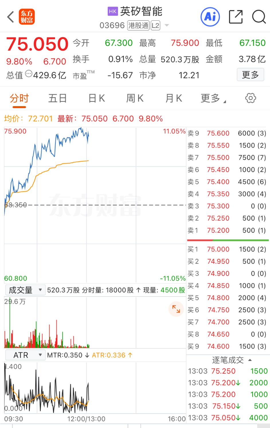 上证报中国证券网讯(记者何治民)4月22日,英矽智能震荡走强,一度涨超11%,截至13时09分,股价涨9.8%,报75.05港元/股。