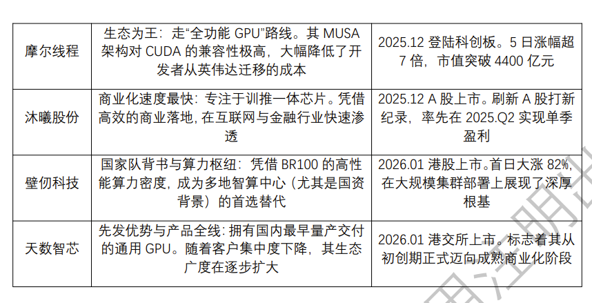 国产GPU“四小龙”情况对比