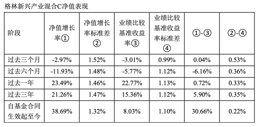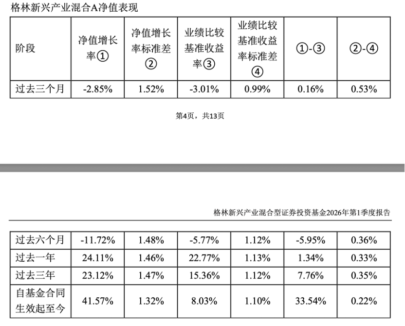 根据季报,格林新兴产业混合A一季度净值增长率为-2.85%,C份额为-2.97%,同期业绩比较基准收益率为-3.01%。从相对收益看,这只基金一季度略微跑赢了基准,但整体仍是负收益。对于一只因基金经理变更而受到较多关注的产品来说,这样的净值表现很快也成为季报披露后的焦点。