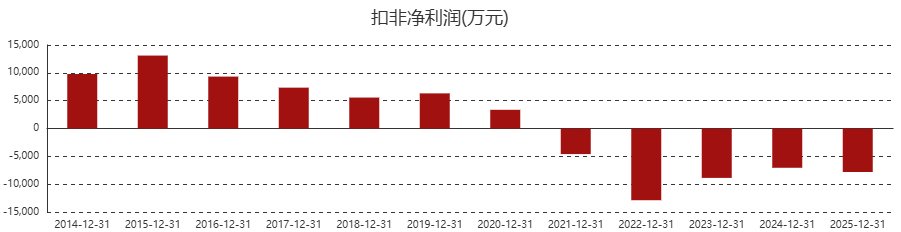 这是公司扣非连续第五年亏损,2021~2025年,瀛通通讯扣非累计亏损4.12亿元。