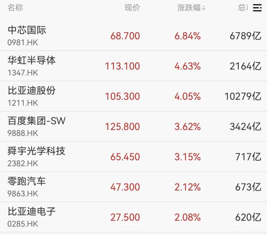 港股方面,恒生科技指数飘红,中芯国际、华虹半导体、比亚迪股份等涨幅居前。