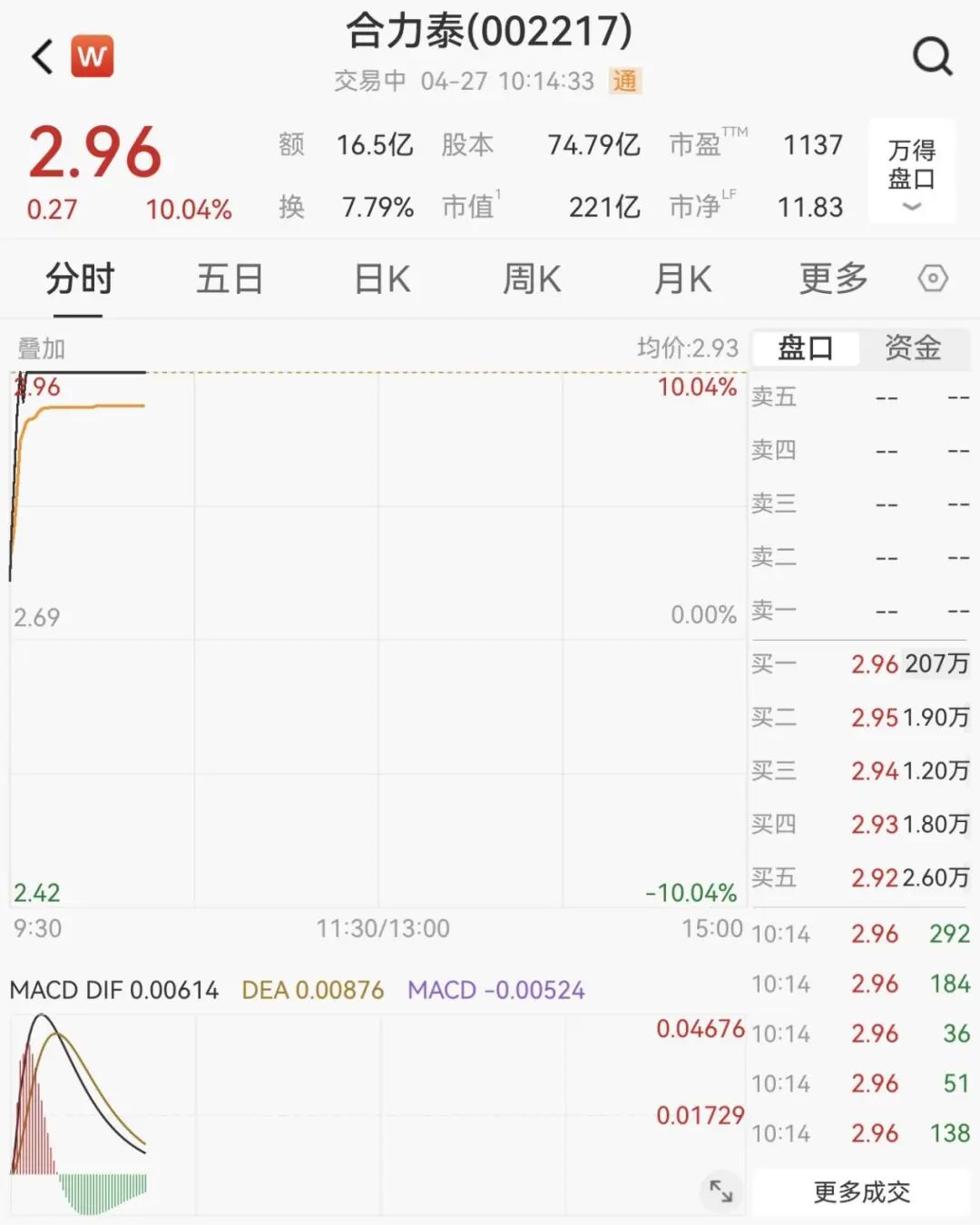 *ST恒久开盘跌停,随后快速拉涨停,盘中上演“地天板”。该股现报3.56元/股,成交额近6552万元。