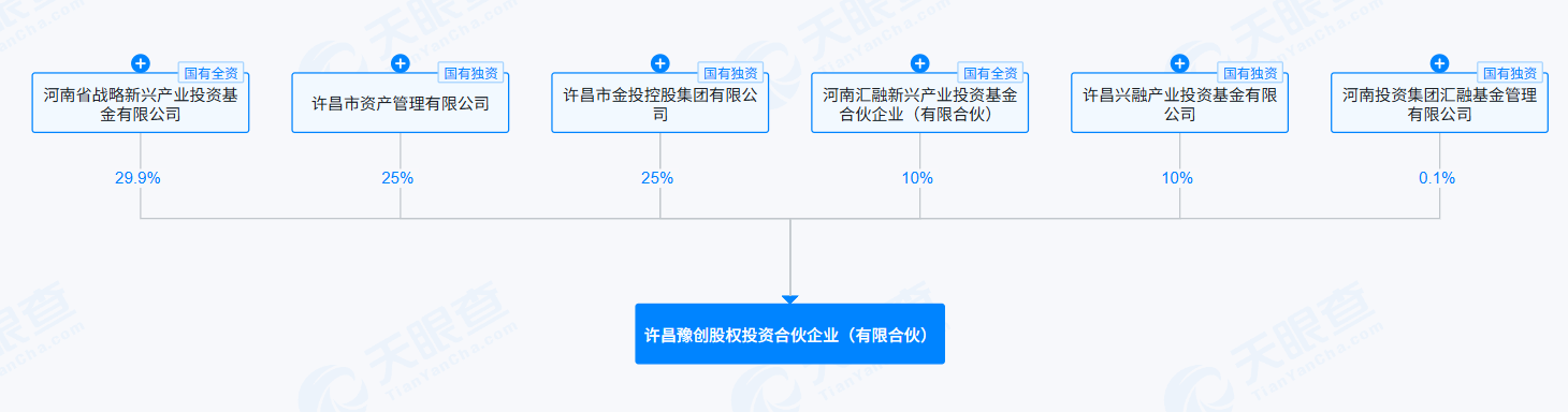 天眼查显示,该基金合伙人包括河南省战略新兴产业投资基金有限公司、许昌市金投控股集团有限公司、许昌市资产管理有限公司、许昌兴融产业投资基金有限公司、河南汇融新兴产业投资基金合伙企业(有限合伙)、河南投资集团汇融基金管理有限公司。