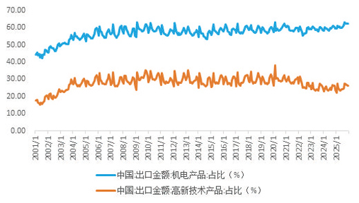 机电产品和高新技术产品出口占比持续增长
