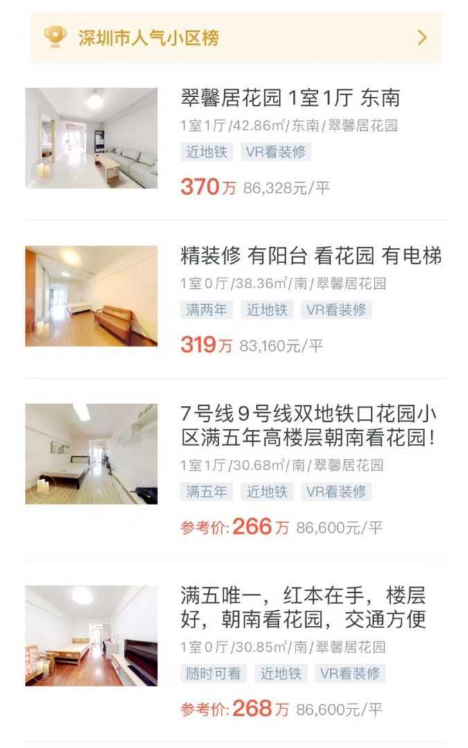 随着成交量下降,降价成为趋势。目前,深圳超过40%的房源以低于参考价成交,接近参考价的房源占比高达85%。在一些二手房平台手机APP上,业主直接挂出低于参考价的价格。