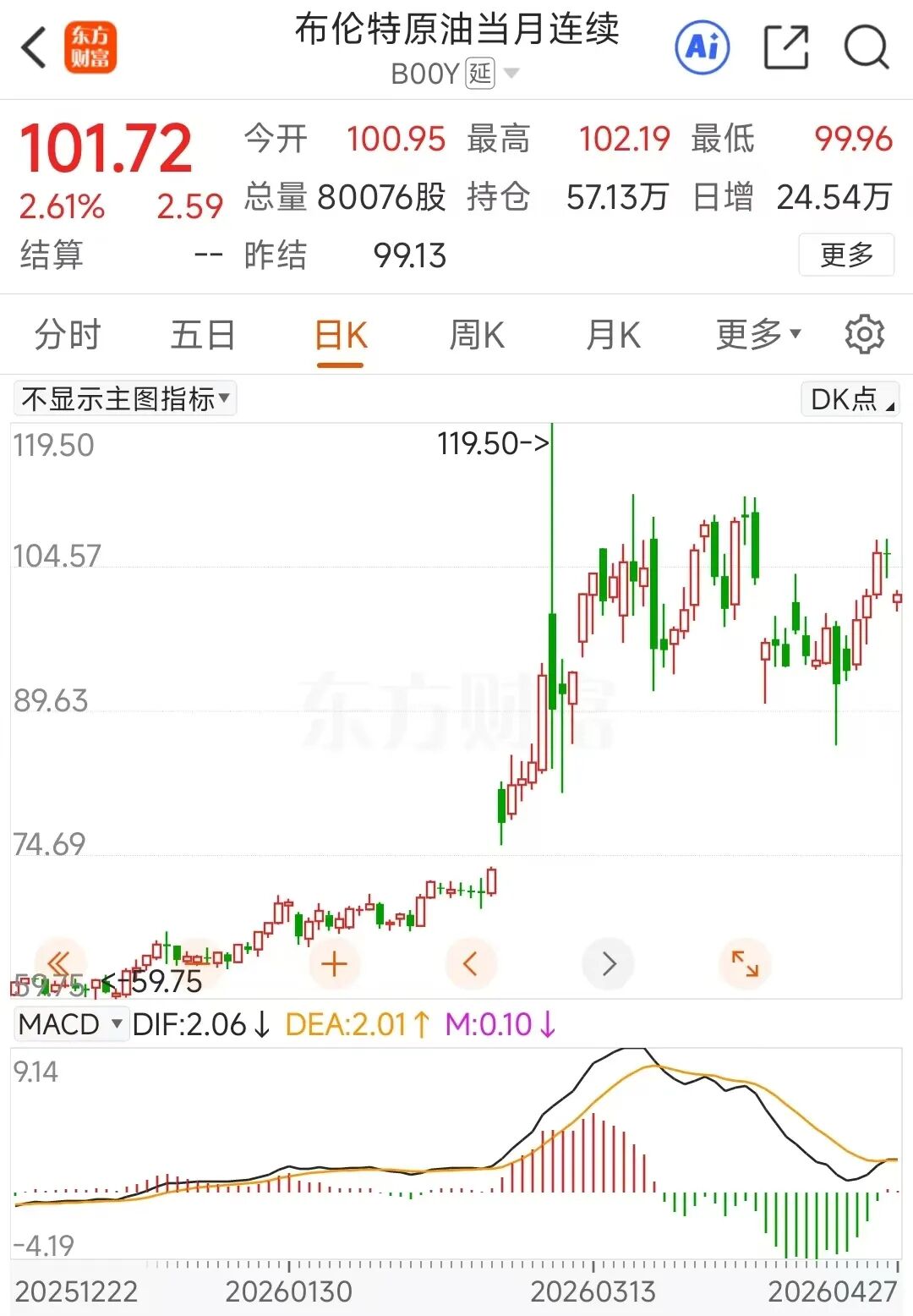 布伦特原油在4月27日呈先抑后扬之势,至截稿时涨幅超过2%。