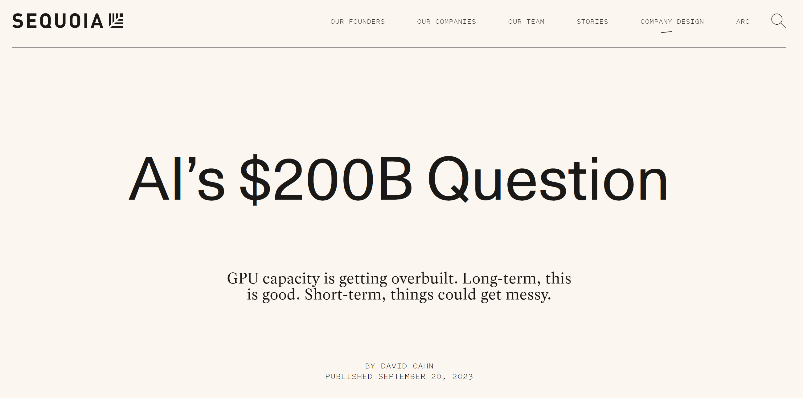 针对Cahn提出的“AI收入缺口”问题,Appenzeller给出了肯定的回答:AI行业不仅能够赚够2000亿美元的收入来收回前期投资成本,而且作为网络基础设施的一部分,它还将创造更多的经济价值和社会价值。