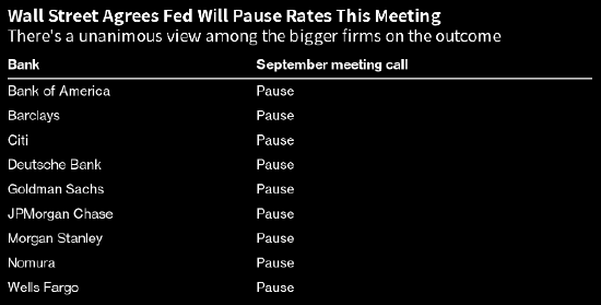 随着美联储即将在北京时间周四凌晨2点公布9月利率决议,这些疑问有望得到部分解答。美联储主席鲍威尔将在半小时后的新闻发布会上主持会议,市场普遍预计美联储将维持联邦基金利率目标区间在5.25%-5.5%不变,这也是美联储今年以来第二次在议息会议上选择“按兵不动”。