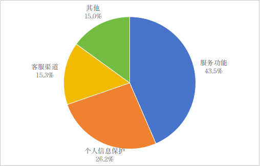 2026年第一季度,互联网信息服务投诉平台收到的互联网用户投诉中,服务功能类投诉占比43.5%,个人信息保护类投诉占比26.2%,客服渠道类投诉占比15.3%,其他类投诉占比15%。在接入平台的178家互联网企业中,新浪微博等3家企业投诉处理及时率较低(详见附件2),工业和信息化部已督促相关企业妥善处理用户反映的问题。