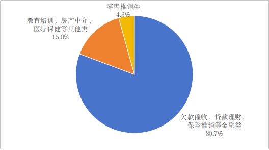 2026年第一季度,非应邀商业电子信息用户投诉中,涉及欠款催收、贷款理财、保险推销等金融类投诉占比80.7%,涉及零售推销类投诉占比4.3%,涉及教育培训、房产中介、医疗保健等其他类投诉占比15.0%。工业和信息化部督促相关电信企业对有关线索进行了核查处置,将涉及源头营销的问题线索转相关行业主管部门处理。