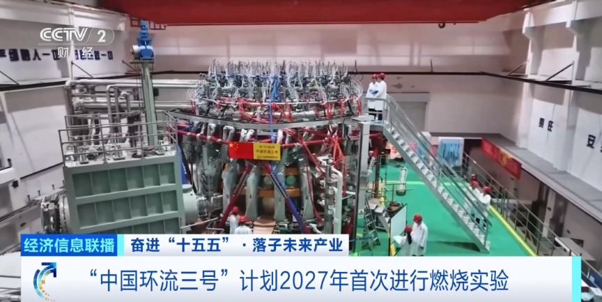 “中国环流三号”作为我国“新一代人造太阳”装置,实现了离子温度1.2亿摄氏度、电子温度1.6亿摄氏度的“双亿度”,聚变综合参数达到10的20次方量级。当前,“中国环流三号”正按计划推进全面升级,计划2027年首次实现燃烧实验。