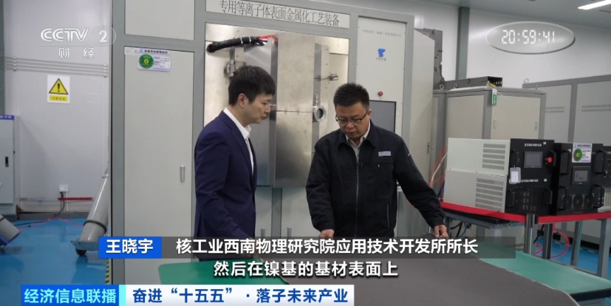 核工业西南物理研究院应用技术开发所所长王晓宇:我们主要是利用等离子体的高活性,在镍基的基材表面上来镀一层制氢电极的催化剂,这样就能实现用非贵金属来实现贵金属质性电极的功能,它的成本可能只有贵金属的十分之一。