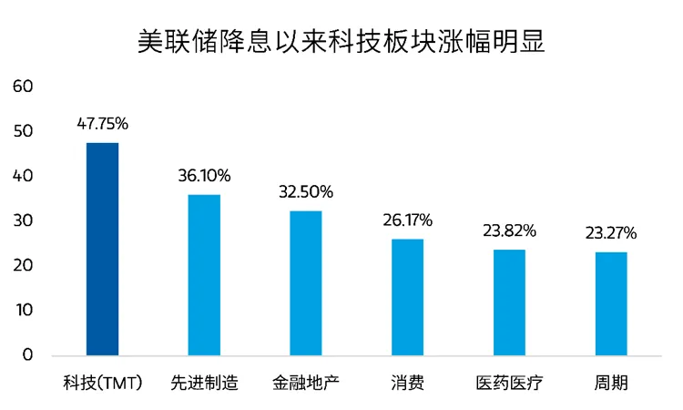 据统计,自美联储年内首次降息以来,截至11月19日,科技(TMT)指数累计涨幅达到了47.75%。