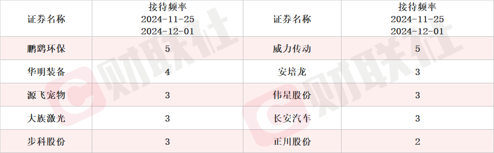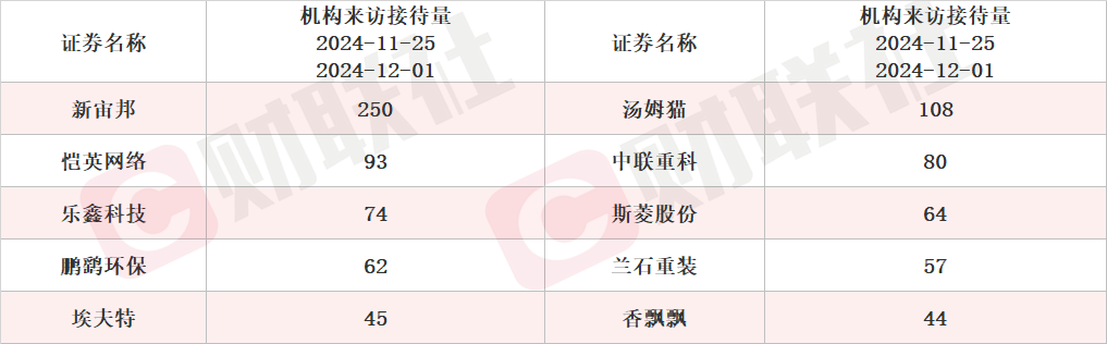 在具体上市公司方面,鹏鹞环保和威力传动以5次的调研次数并列第一。而从机构来访接待量来看,新宙邦、汤姆猫和恺英网络分别位列前三,接待机构数量分别为250家、108家和93家。