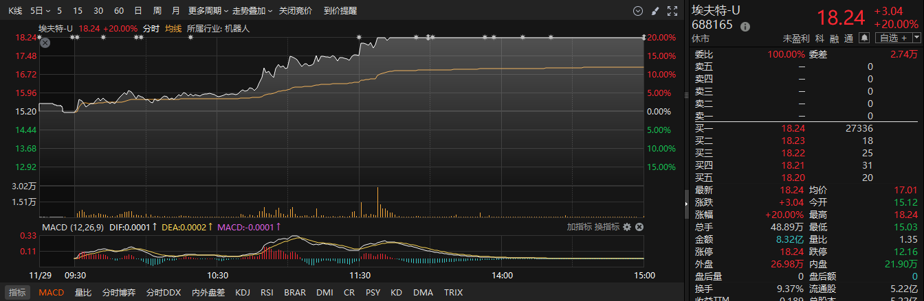 市场表现方面,机器人概念股本周表现尤为活跃。其中,埃夫特发布调研纪要显示,公司已与国家先进制造产业投资基金等共同出资设立了启智(芜湖)智能机器人有限公司,研发内容包括自主人形机器人、灵巧手项目等,人形机器人样机预计将于2025年上半年发布。受此消息影响,埃夫特周五收盘20CM涨停。