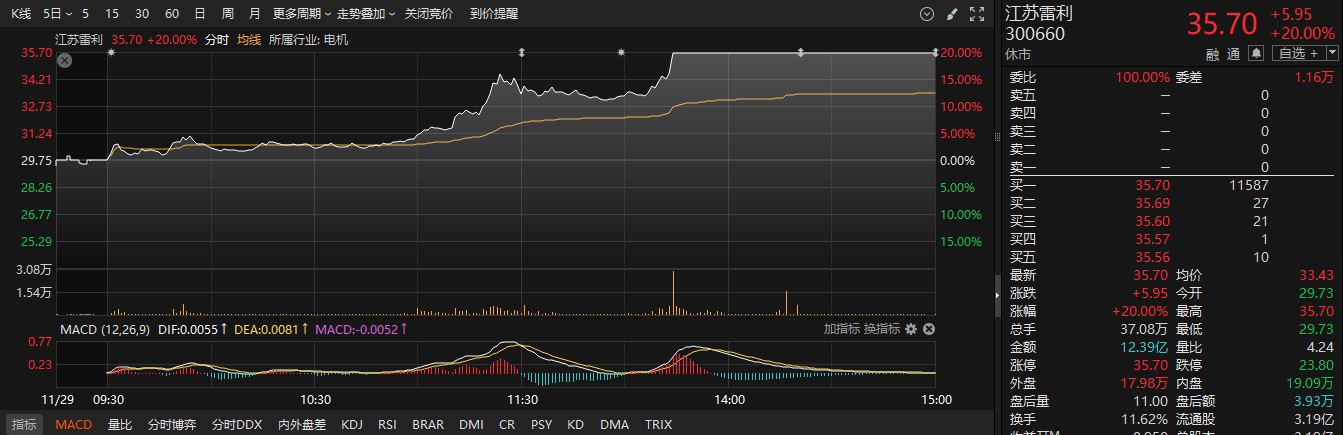 江苏雷利也发布了调研纪要,其子公司安徽中科灵犀科技有限公司经营范围包括工业机器人制造和服务消费机器人销售等,依托中国科学技术大学的科研资源,推进产学研融合发展。江苏雷利周五收盘同样20CM涨停。