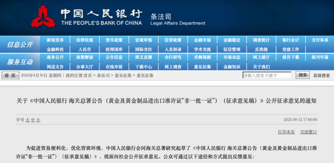 2025年9月,中国人民银行、海关总署联合发布《准许证》“非一批一证”(征求意见稿),向社会公开征求意见,意在进一步促进贸易便利化,优化营商环境。